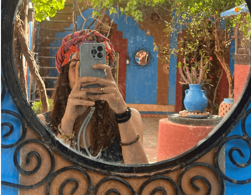 Day 4 – Ci svegliamo a Marrakech, con la sensazione sottile di essere attese. Riconosciamo la strada, il mercante che sorride, il ritmo del fabbro sul ferro. Ci specchiamo in uno specchio intrecciato all’angolo, e per un istante non è chiaro se stiamo guardando o se siamo guardate. Marrakech oggi è più casa. E proprio per questo possiamo entrare nella scomodità del caos, nell’eccesso, nell’irrefrenabile — restando aperte mentre tutto si muove.